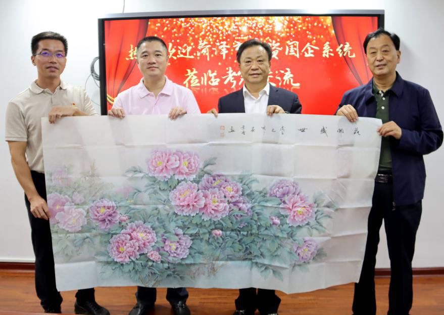 交流會結(jié)束后,菏澤市國資國企系統(tǒng)還將一幅展現(xiàn)菏澤市市花牡丹——《花開盛世》畫作贈送給集團(tuán),寓意雙方締結(jié)友誼,著眼未來合作共贏。