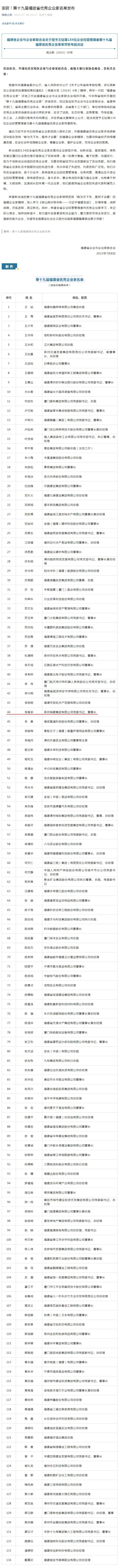 第十九屆福建省優(yōu)秀企業(yè)家名單發(fā)布