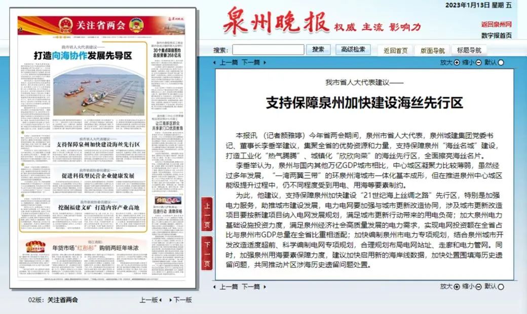 1月11日-15日,為期五天的福建省十四屆人大一次會(huì)議正在福州召開(kāi)。作為泉州市省人大代表,泉州城建集團(tuán)黨委書記、董事長(zhǎng)李垂舉提出的“支持保障泉州加速建設(shè)‘21世紀(jì)海上絲綢之路’先行區(qū)的建議”,引發(fā)人民網(wǎng)、福建日?qǐng)?bào)、泉州晚報(bào)等央媒、省媒、市媒廣泛報(bào)道關(guān)注。