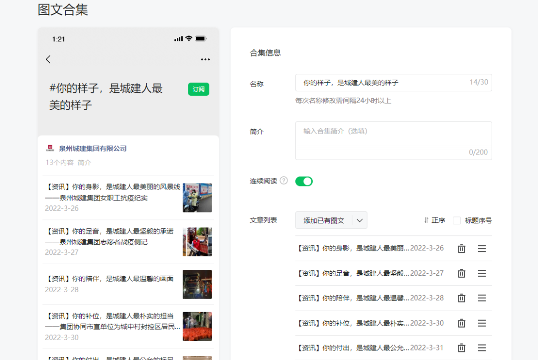 堅(jiān)持“內(nèi)容為王”,采用H5、海報(bào)、圖解、視頻等市民喜聞樂見的形式,切實(shí)增強(qiáng)了信息的吸引力、感染力、傳播力,集團(tuán)官微長(zhǎng)期位居泉州政務(wù)新媒體影響力榜單(交通市政類)榜首。截至2022年底,集團(tuán)官微已吸引超2.1萬(wàn)名用戶關(guān)注,較去年同期增長(zhǎng)69%,關(guān)注人數(shù)、活躍度不斷攀升。