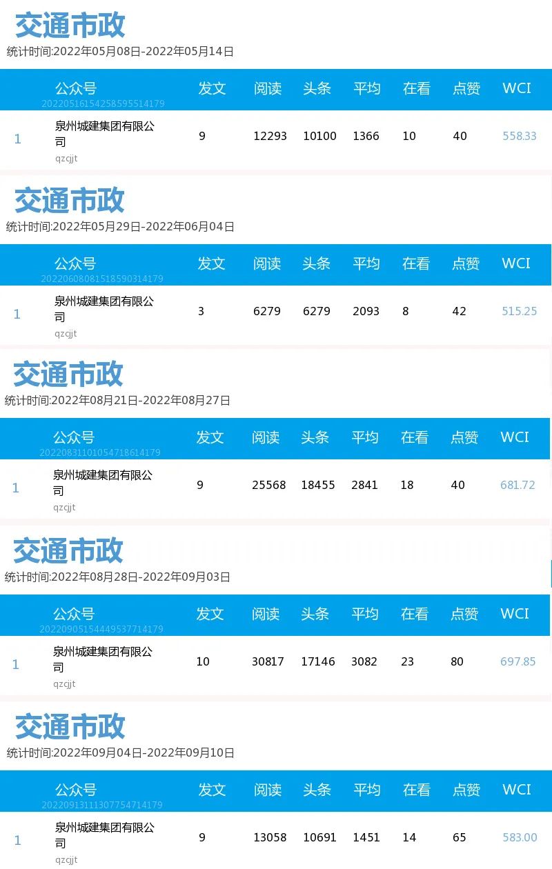 “泉州政務(wù)新媒體影響力榜單”由泉州市委網(wǎng)信辦、閩南網(wǎng)聯(lián)合發(fā)布,清博智能提供數(shù)據(jù)支持,共監(jiān)測(cè)統(tǒng)計(jì)泉州市9大類、378個(gè)政務(wù)微信公眾號(hào)運(yùn)營(yíng)指數(shù),此前已經(jīng)連續(xù)成功舉辦七屆,受到全市各級(jí)各相關(guān)部門和單位的廣泛關(guān)注。年度榜單數(shù)據(jù)顯示,集團(tuán)官微在40個(gè)“交通市政”類微信公眾號(hào)中以644WCI(微信傳播指數(shù))拔得頭籌。