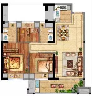建筑面積約90㎡,三室兩廳兩衛(wèi)